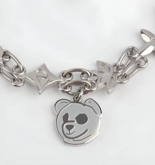 Our Legacy Chain Necklace - a symbolic masterpiece that celebrates harmony, love, hope, and creativity. This unique necklace features four distinct links: the lotus for harmony, the hidden heart for concealed love, the star for endless hope, and the "LC" symbol representing our creative culture, Looneycoons. The bear pendant, our logo, embodies the protection to be yourself. Discover the meaning behind each link and wear your values proudly. Shop now and make a statement with the Legacy Chain Necklace.